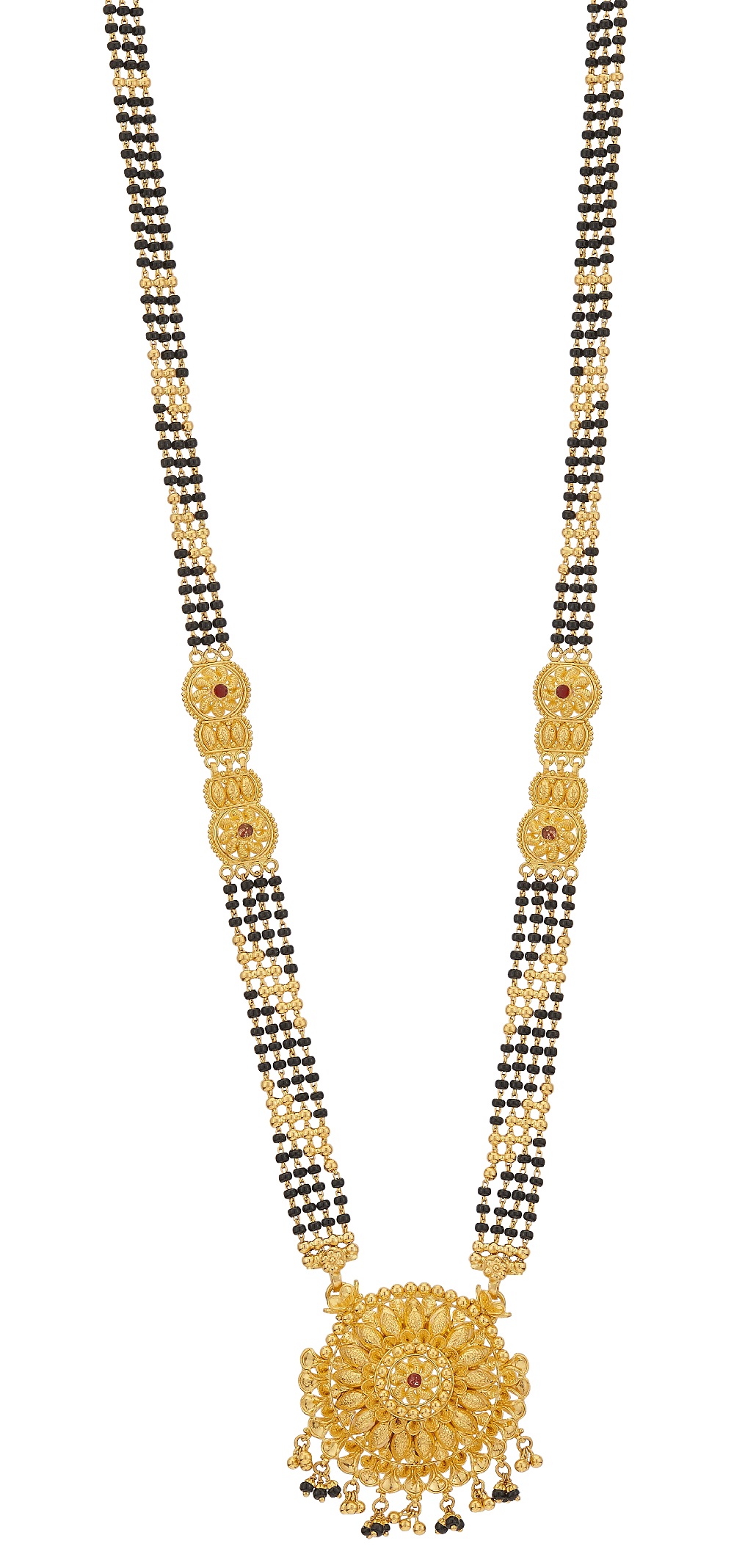 Of the 21 pendants, 10 pendants symbolise the ten avatars of Lord Vishnu and two pendants come with ruby and emerald stones embedded in them. Eight pendants are for ashtamangal (‘ashta’ means eight and ‘mangal’ means good happenings) whereas the tenth pendant is a taviz.