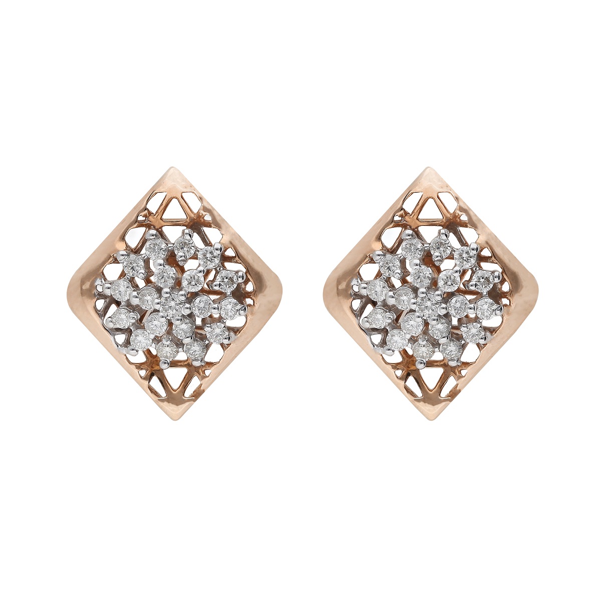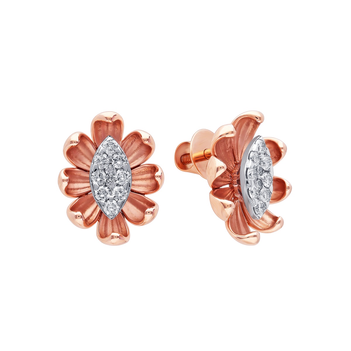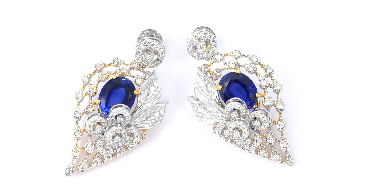 The wondrous patterns like entangled roots and curvaceous leaves are etched in jewellery pieces with a cluster setting of white diamonds and gold mesh. The whimsical charm of dainty leaf-shaped ear studs and floral drop earrings makes this range an everyday wonder like no other.