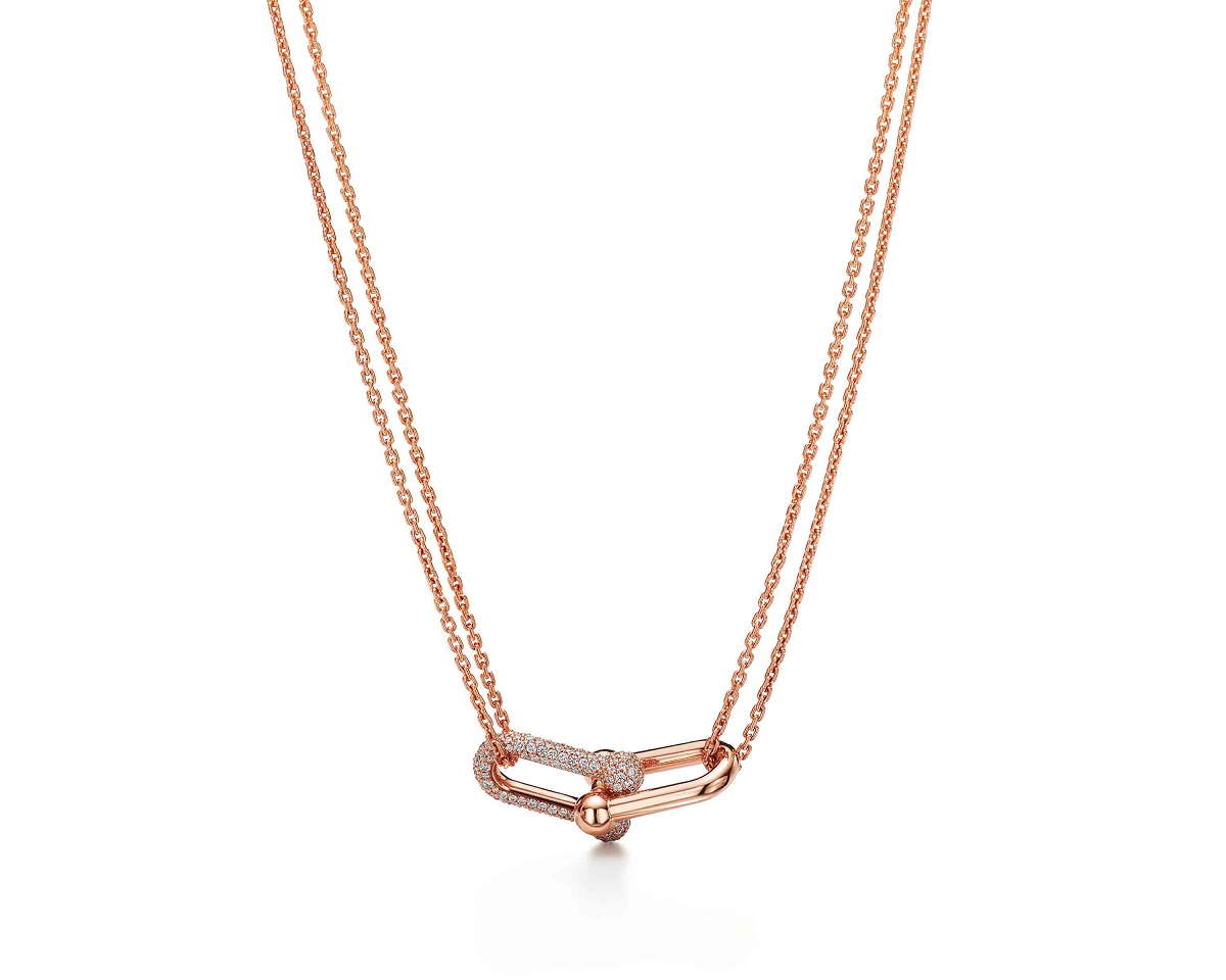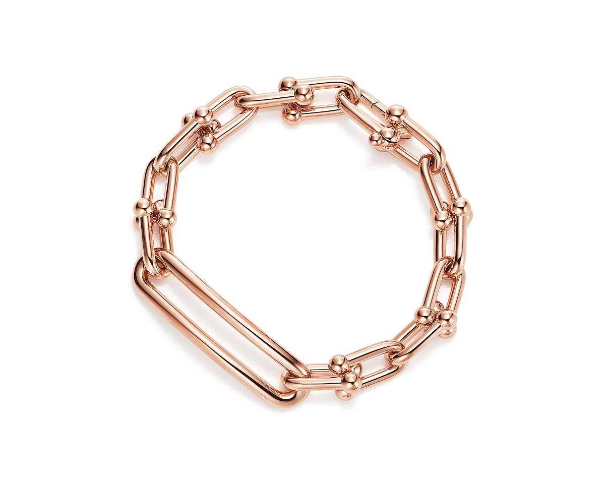 Emanating strength and confidence, ROSÉ wears the collection’s graphic 18k yellow and rose gold links accented with pavé diamonds. Tiffany chose ROSÉ to star in the new campaign for her bold personality and modern style influence—as someone who embodies the attitude and identity of the collection.