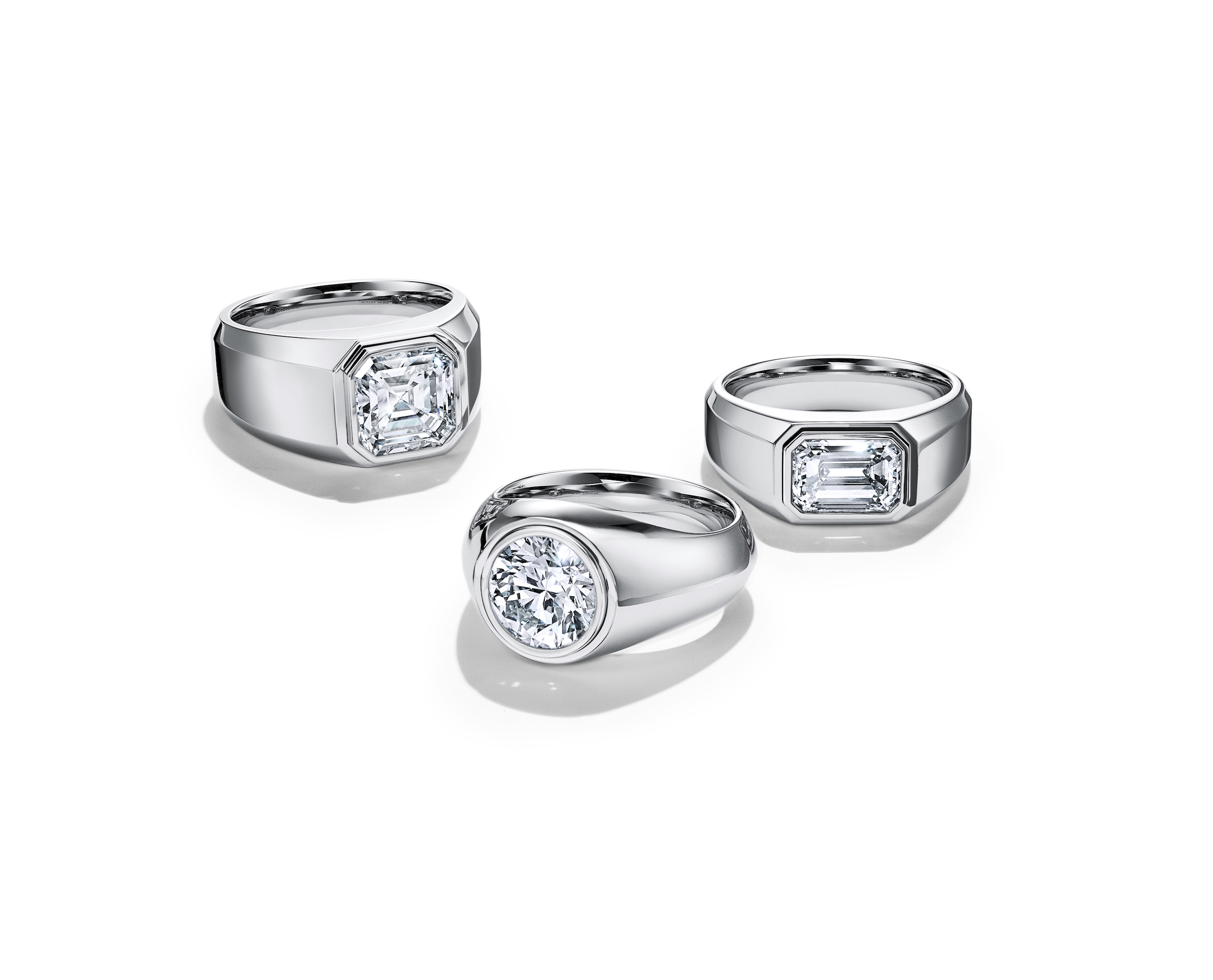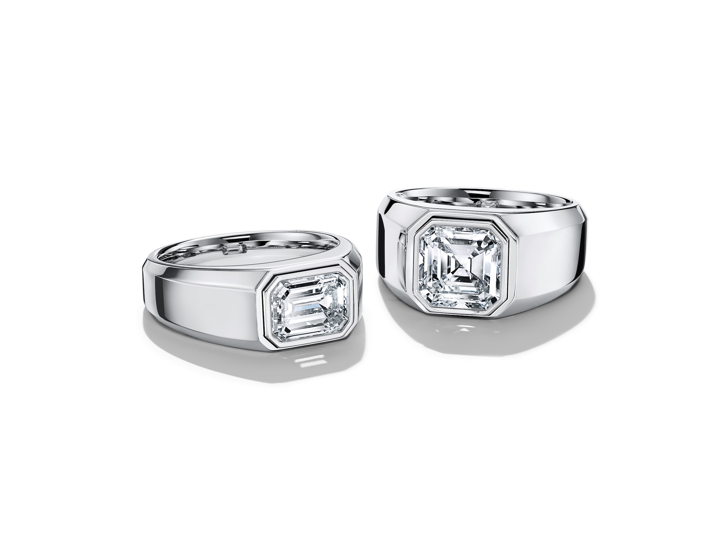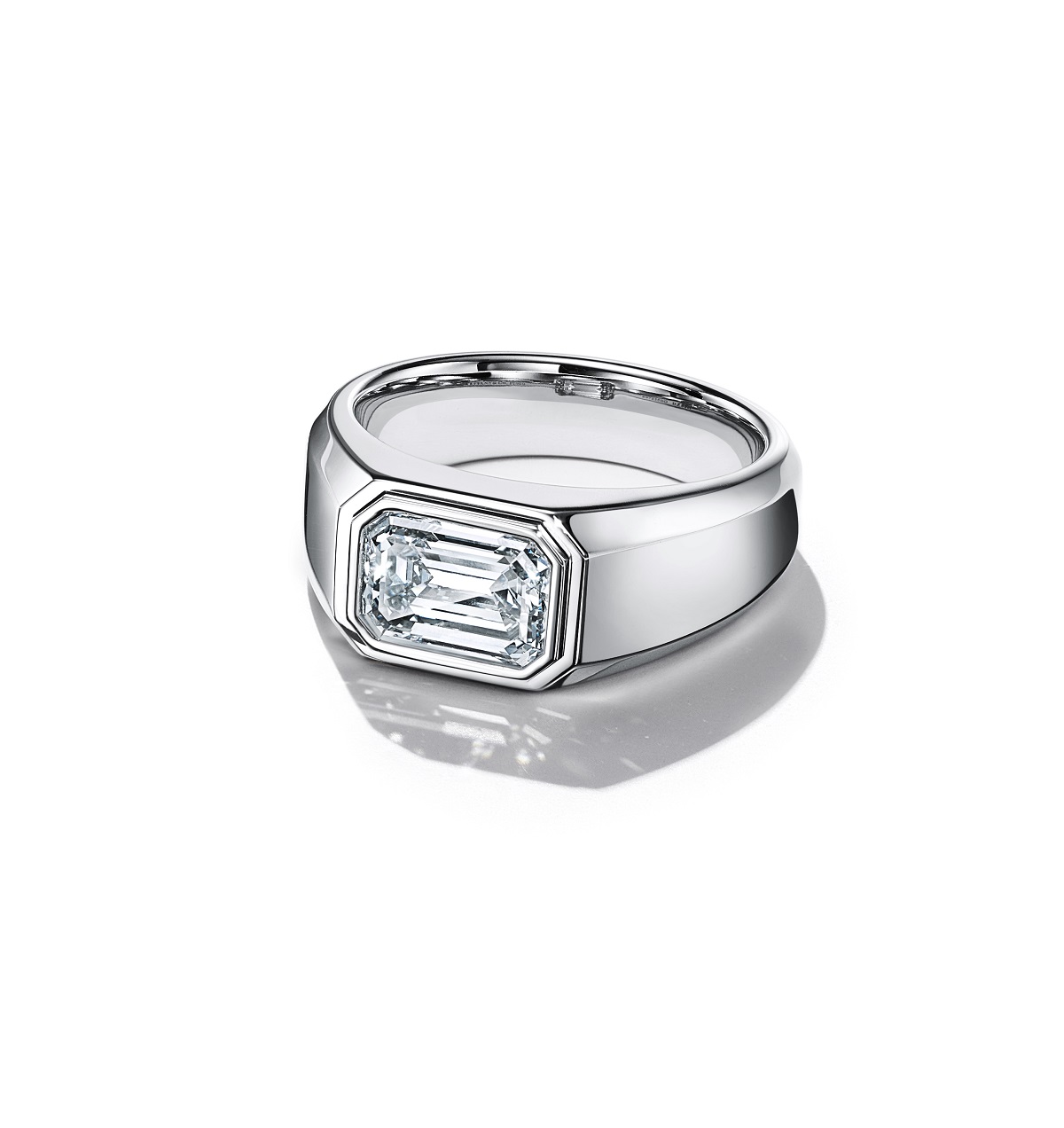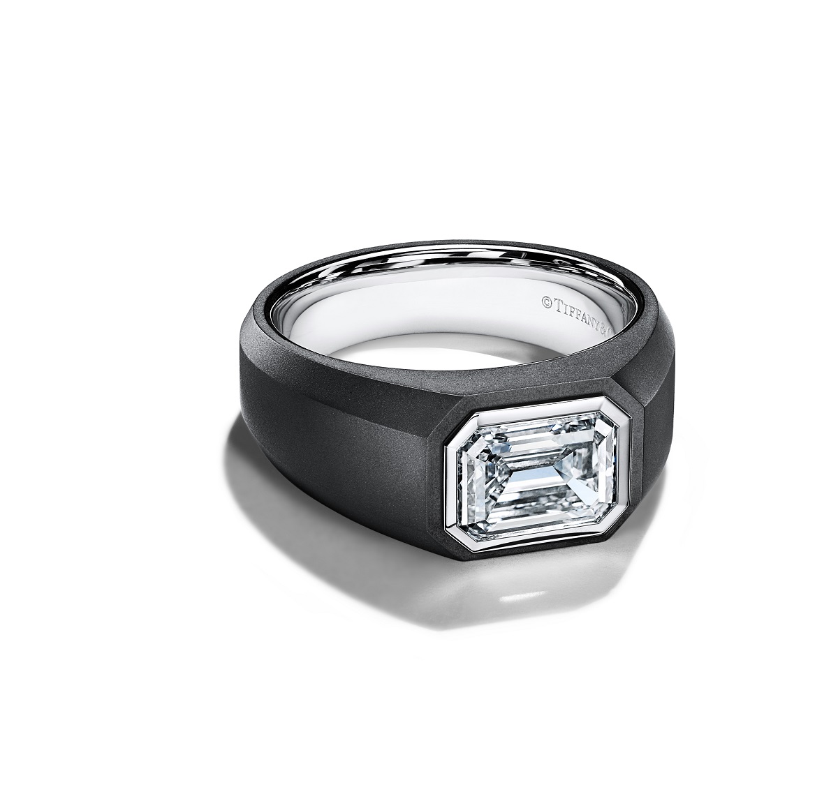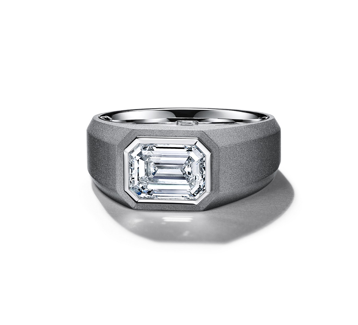The first release of Tiffany’s men’s engagement ring will be available in round brilliant and emerald-cut diamonds up to 5 carats.
