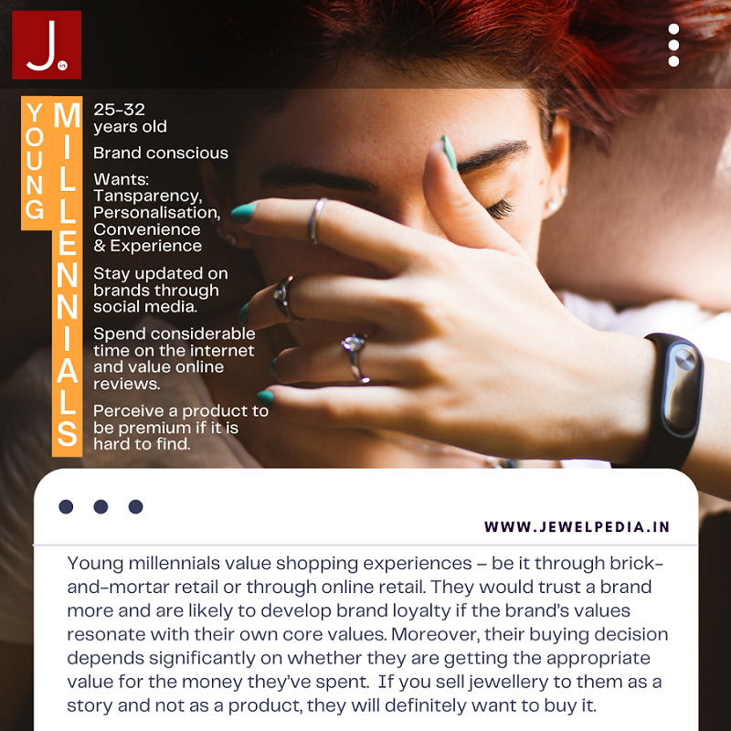 Since this audience is digitally active, jewellers should increase their online presence through social media platforms like Facebook, Twitter, and Instagram. They need to start putting out blogs to given information about their jewellery.