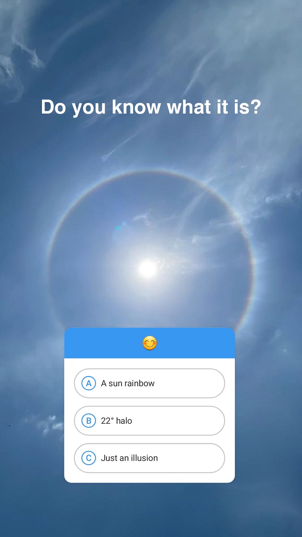 A sun Halo in this case and happens because of light interacting with ice crystals in the atmosphere. Owing to its radius around the sun (or moon, in a lunar halo), it’s often called a 22-degree halo. It’s a very common phenomenon in cold countries. But in our country, its occurrence is rare and cannot be predicted.