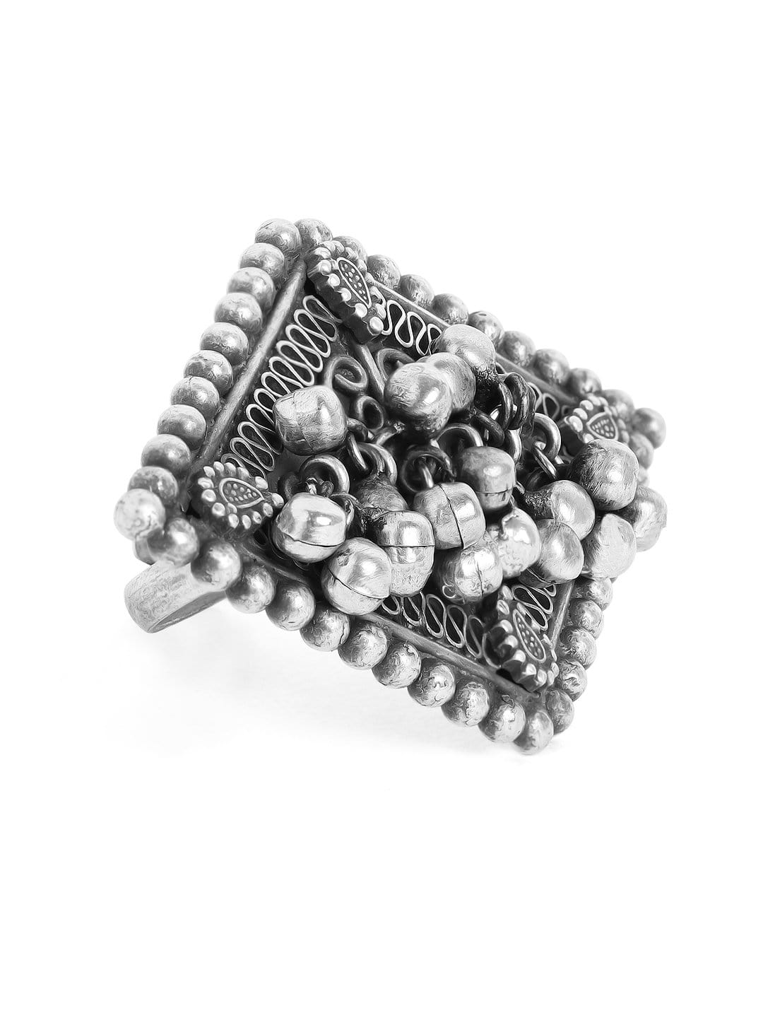 Be it the mesmerising Ghunghroos owing to the city of Jaipur or the unfurling motif necklaces rendered from the popular ancient Rawa work techniques, the craving for vintage fashion is brought back in this silver oxidized jewellery collection to complement the feminine cuts, adding a magical touch to your bold statement looks.