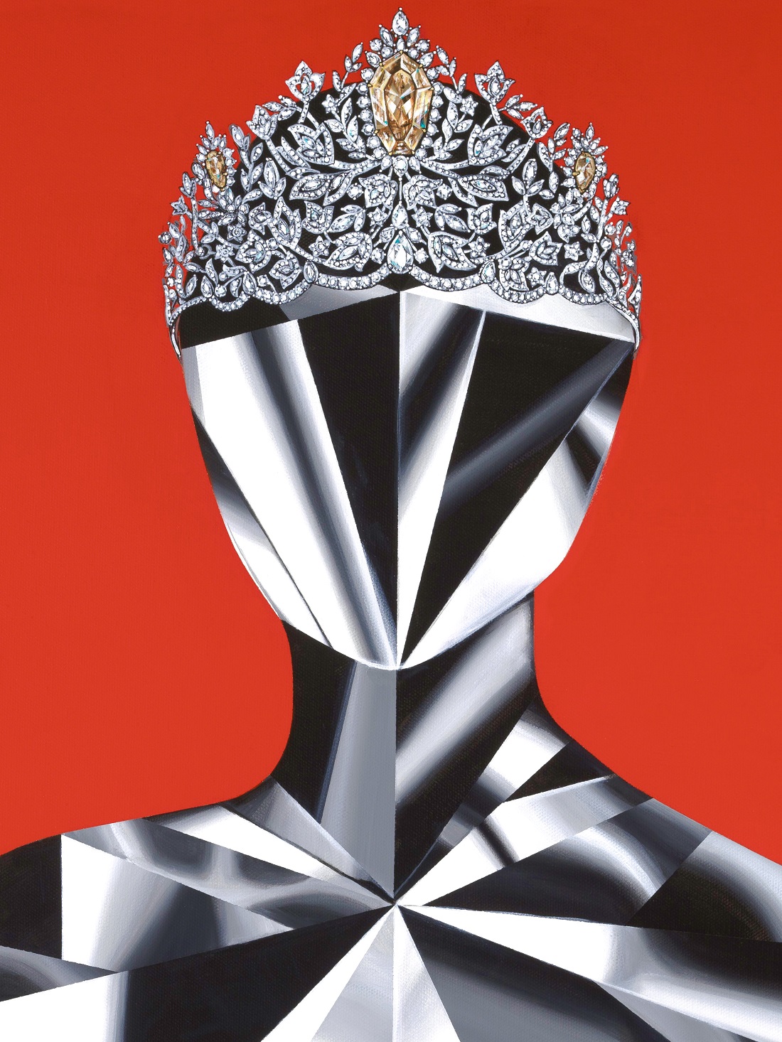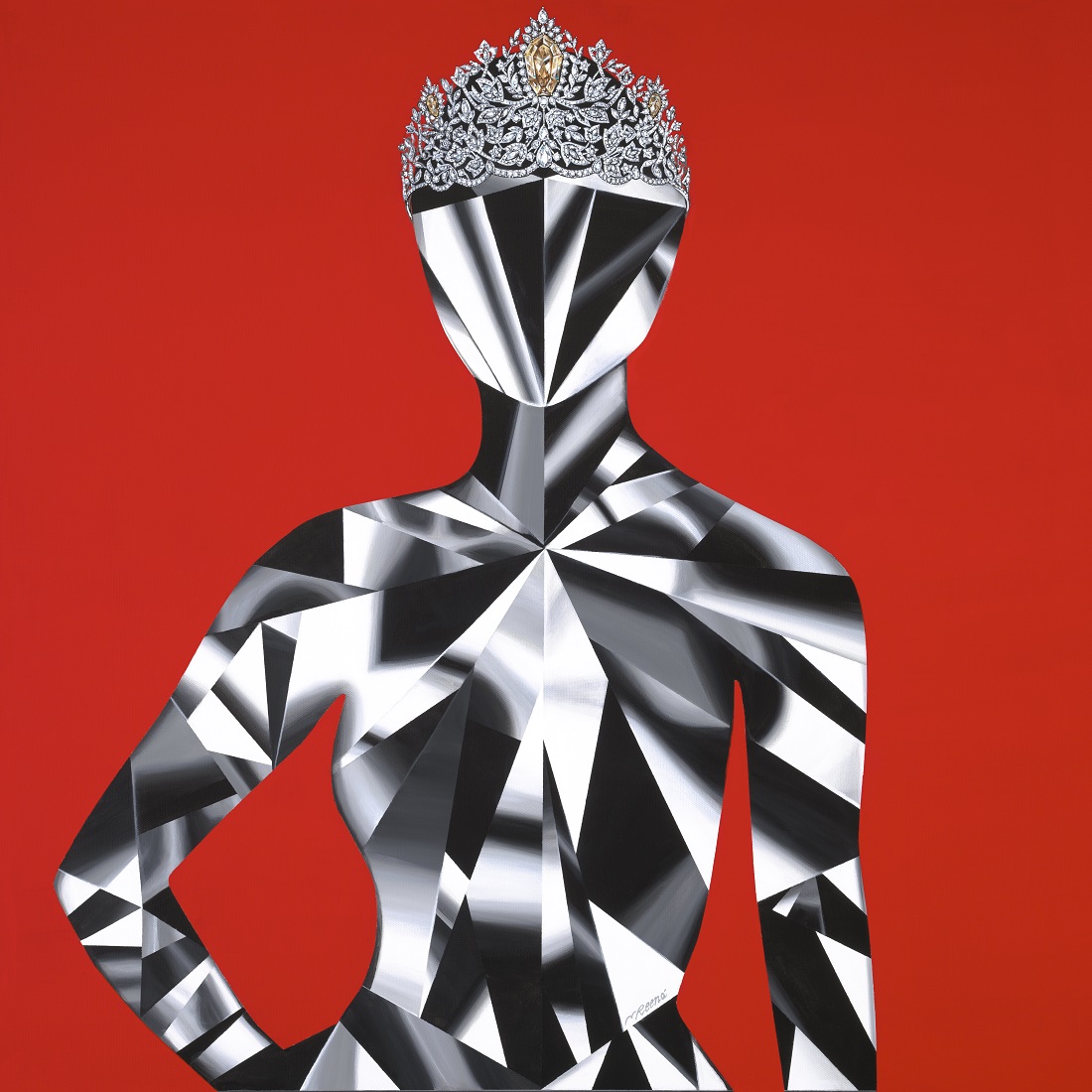 “I paint diamonds to celebrate nature, our shining human spirit, and humanity. I believe we all are like diamonds – we come in all colors, we are brilliant and full of potential,” said Reena. Using colours red and black to depict passion and strength, Reena’s painting has an empowered woman in the form of a diamond wearing the Mouawad Miss Universe Power of Unity crown. Reena envisioned the diamond woman figure filled with light, limitless potential, who confidently carries the resolve of being an agent of unity and greater societal good. A message, that is quite literally, the crowning glory of the painting.