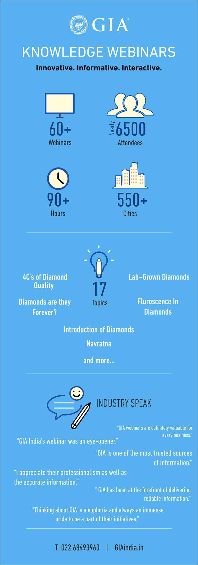 GIA India is empowering the gem and jewellery trade with the latest industry knowledge and advancing its consumer protection mission with more than 60 knowledge webinars that were delivered complimentary. These webinars were attended by nearly 6,500 members of the industry from 550+ cities across India. To learn about our upcoming Knowledge Webinars, call +91-22-68493960.