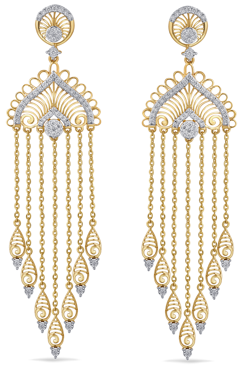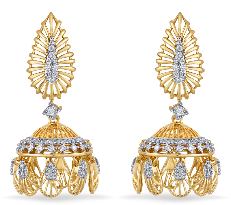 Reliance Jewels ‘Aabhar’ collection features unique handcrafted gold and diamond earring designs. It includes a traditional and contemporary mix of Danglers, Fringes, Top and Drops, Chandeliers, Jhumkis, Studs, and Chandbalis.