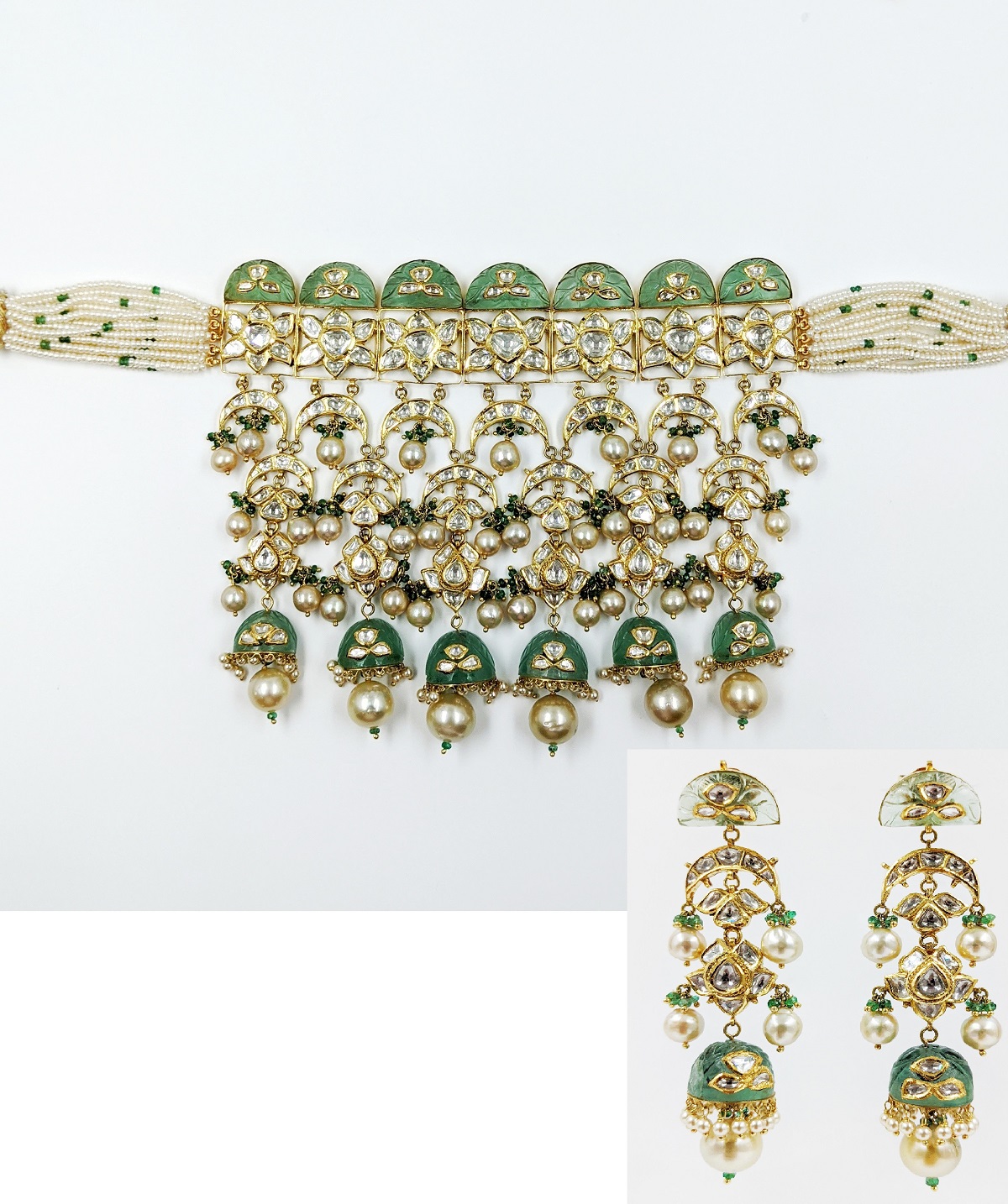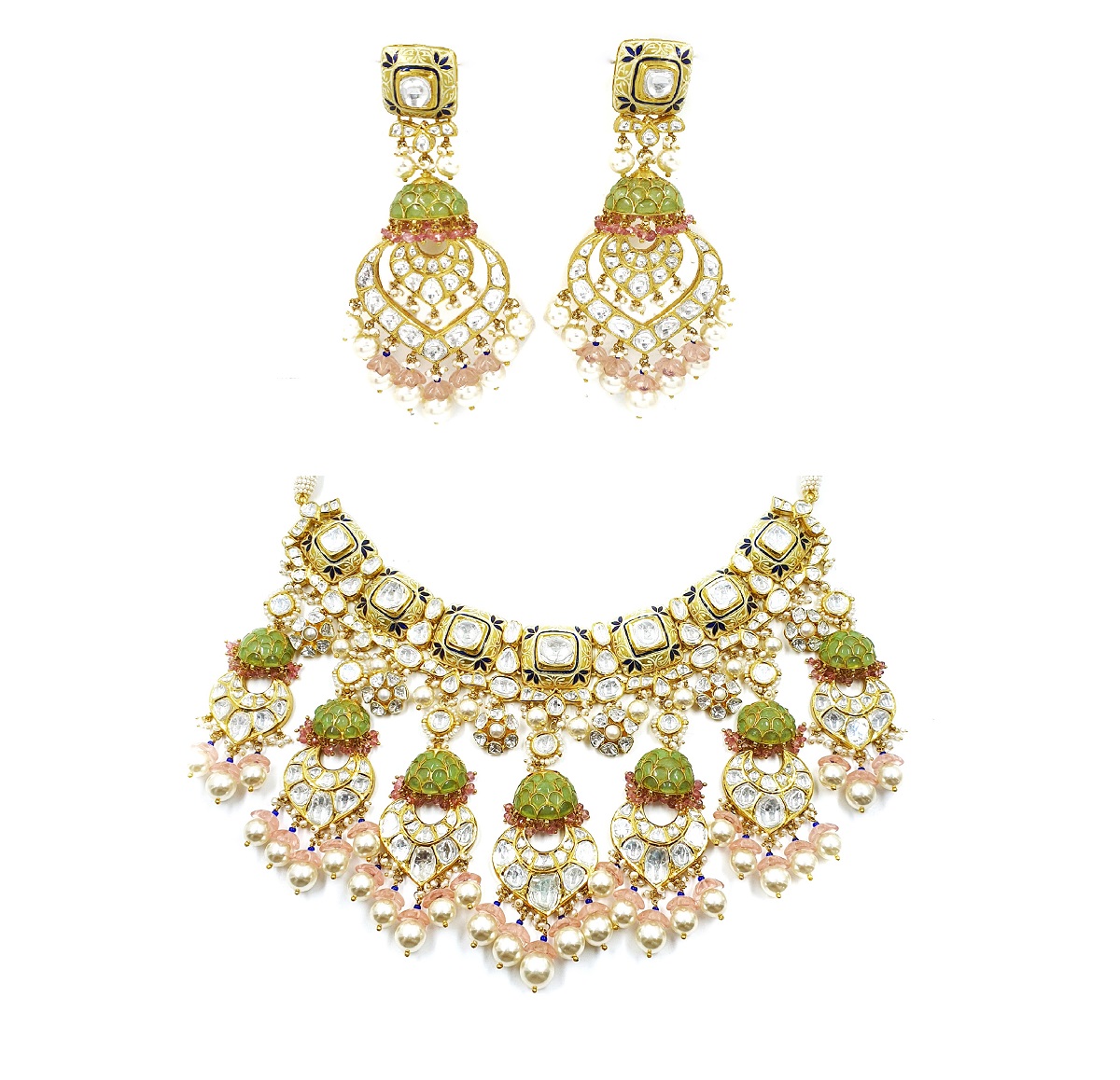 Craftily united with coloured precious and semi-precious gemstones, to lend a personality of their own to every bauble, polkis jewels are meticulously crafted with utmost precision in each piece with looks worthy of center stage, blaring intricate and unparalleled designs and quality.