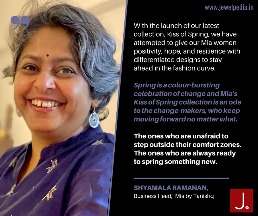 Speaking on the launch of the new collection, Shyamala Ramanan, Business Head, Mia by Tanishq, said, “Spring is a time of reawakening, both in the natural and spiritual worlds. The season is all about the beautiful things and emotions that come alive and mark new beginnings. With the launch of our latest collection, Kiss of Spring, we have attempted to give our Mia women positivity, hope, and resilience with differentiated designs to stay ahead in the fashion curve. Spring is a colour-bursting celebration of change and Mia’s Kiss of Spring collection is an ode to the change-makers, who keep moving forward no matter what. The ones who are unafraid to step outside their comfort zones. The ones who are always ready to spring something new. The glamorous designs and bold blooms make it a perfect gifting option for the loved ones.”