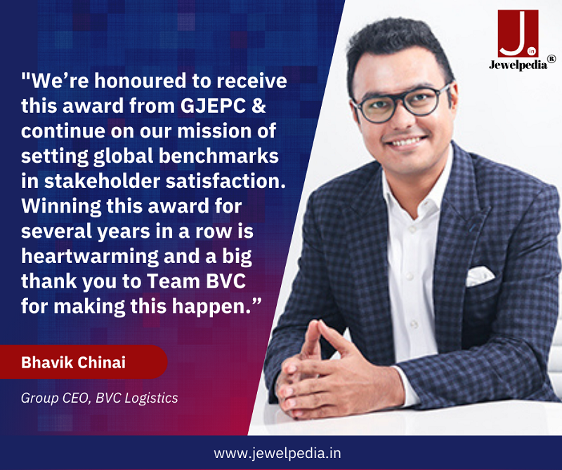 On this occasion, Bhavik Chinai, Group CEO, BVC Logistics said, “We’re honoured to receive this award from GJEPC and continue on our mission of setting global benchmarks in stakeholder satisfaction. Winning this award for several years in a row is heartwarming and a big thank you to Team BVC for making this happen.”