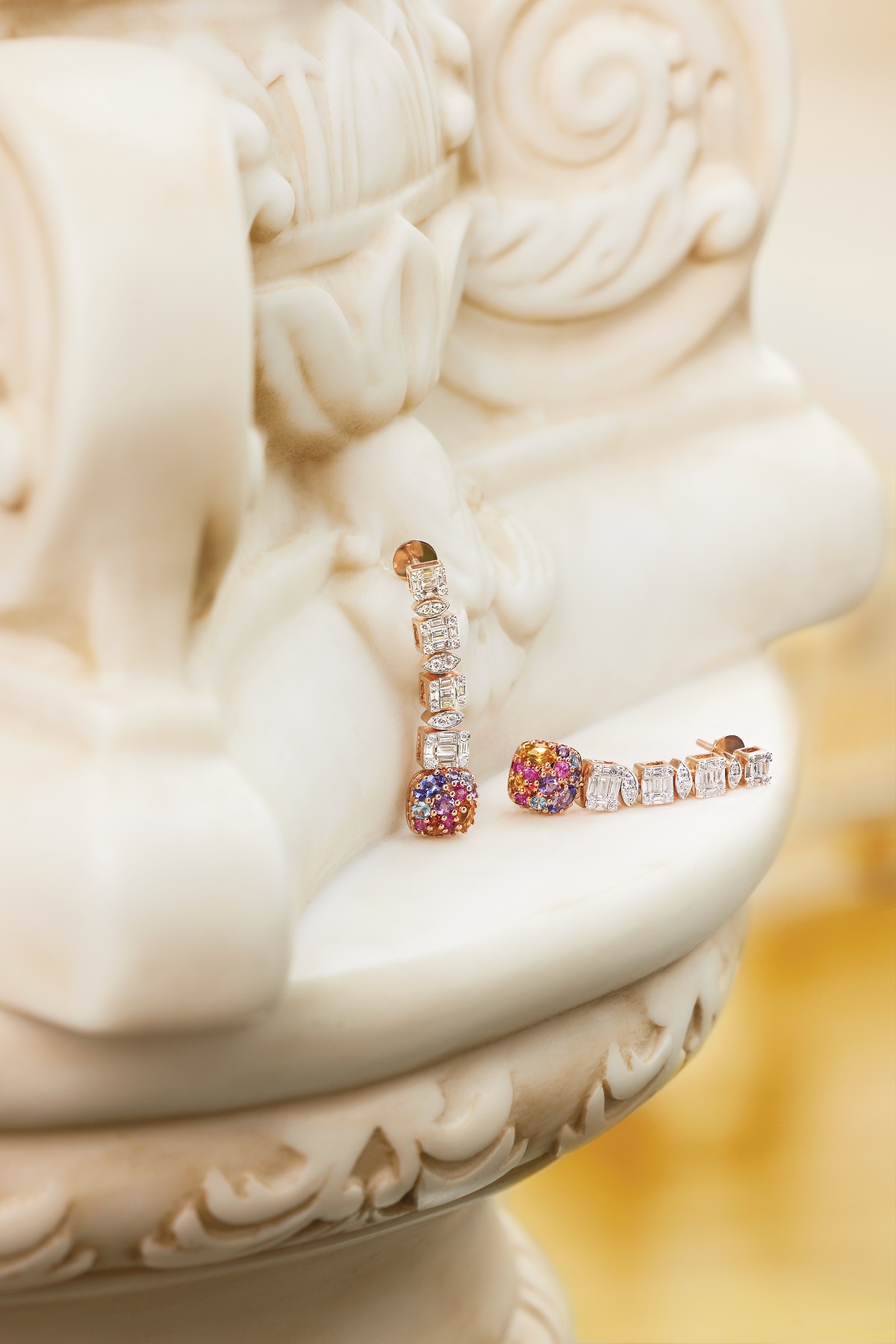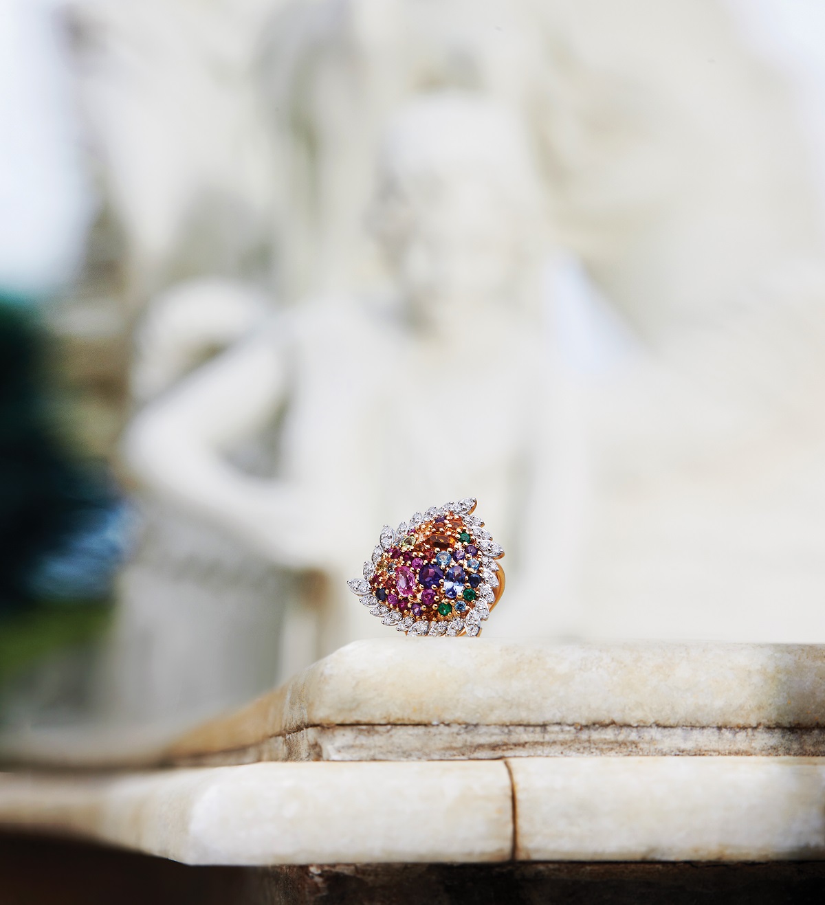 The ‘Colour Me Joy’ collection is an adventurous mix of curved geometries and singular hues of natural amethysts, sapphires, emeralds, rubies, peridots, citrines, tanzanites, and tourmalines. Breaking away from traditional designs, each piece sparks a colourful jubilance, a contemporary charm much like the wearer herself. The unique amalgamation of diamonds and natural gemstones distills the feeling of ecstasy into a kaleidoscope of cocktail rings, earrings, and cuff bangles in 18Karat gold. From colourful shapes to poetic geometry, from the golden aura of citrines to the brilliance of sapphires and tourmalines that sing in a medley of happy hues, each piece is crafted to elicit joy.