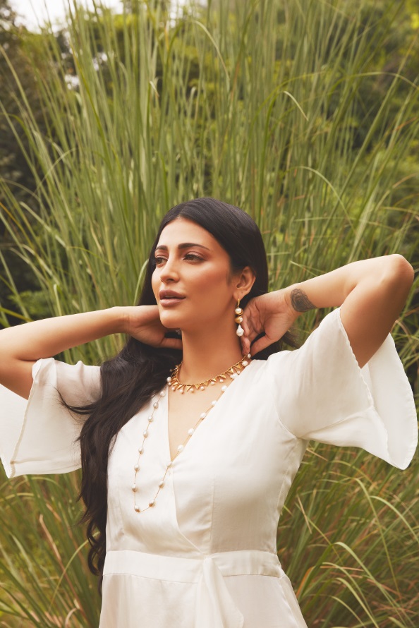 Paksha, a Tarinika brand, has introduced its splendid line of jewellery with a fine amalgamation of timeless design and meticulous quality with the actress and musician Shruti Haasan. Sunaina Ramisetty brought in her latest collection Nipuna featuring her muse, Shruti Haasan who took the internet by storm. In a series of pictures shared by the actress, she looked every bit ethereal in a pearl necklace and choker, who particularly enjoyed a mix of the delicate pearls and modern traditional designs to pair with her brunch to dinner look. The pieces of Nipuna collection by Paksha are made of exquisite freshwater pearls, gemstones and gold plated 925 silver. The style ranges from modern, contemporary to traditional.