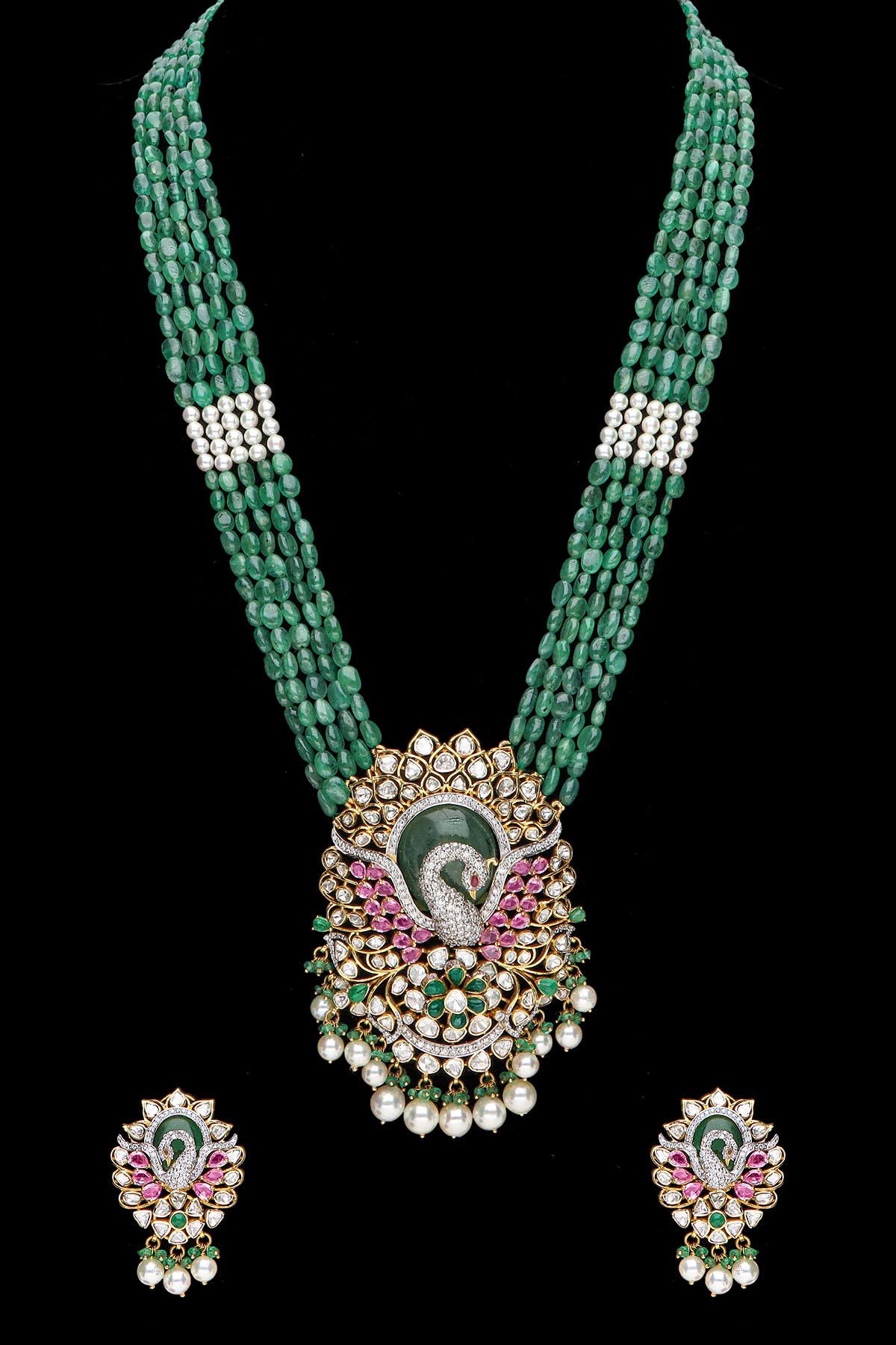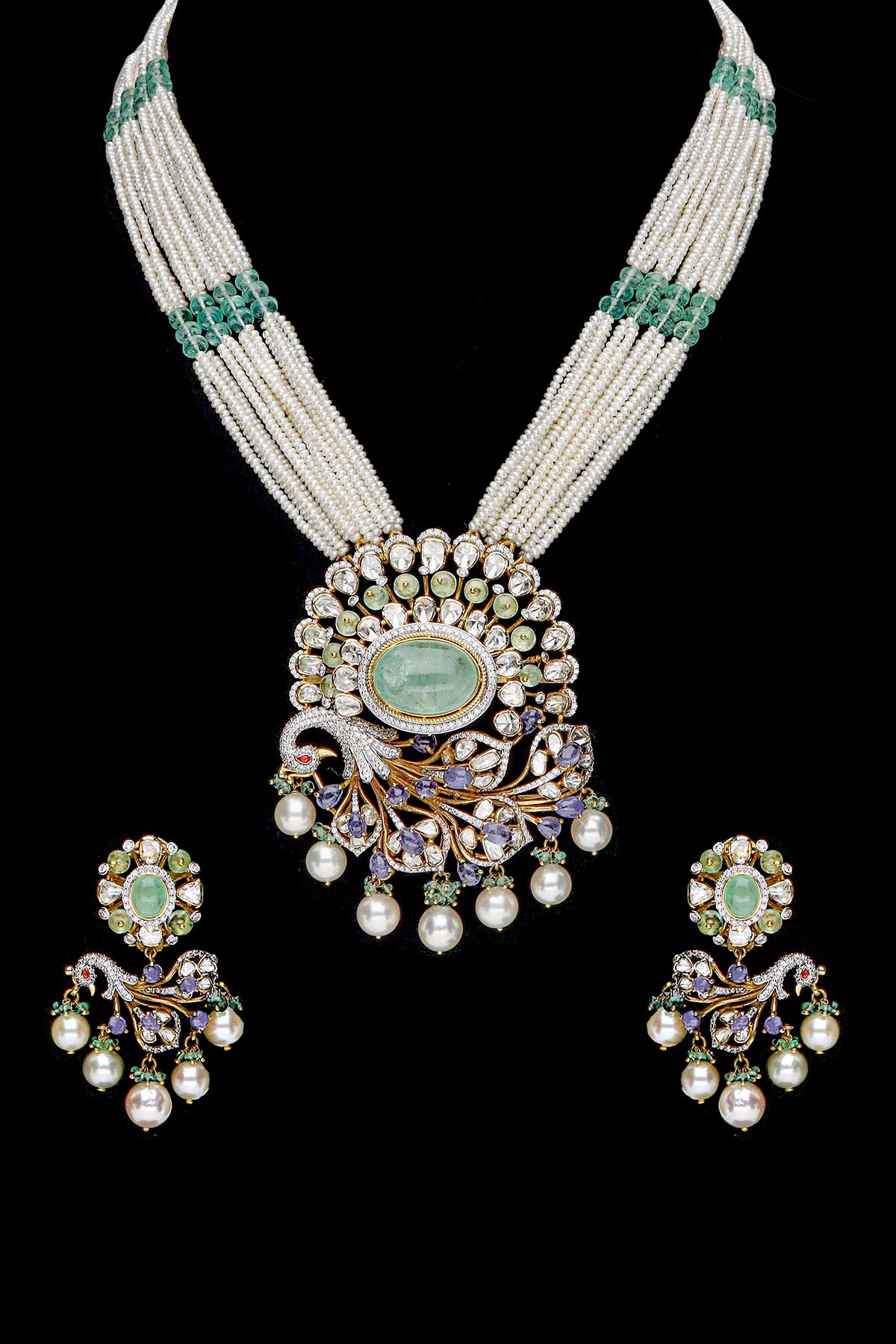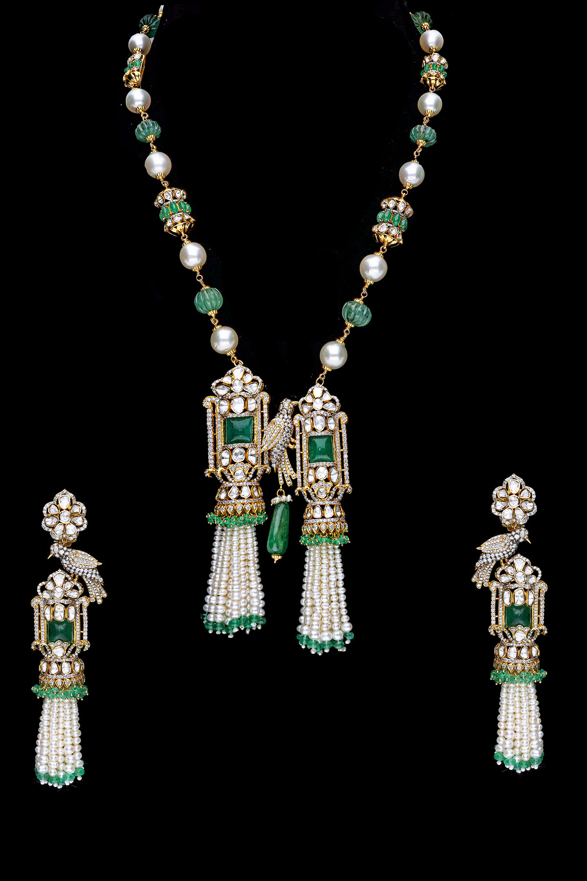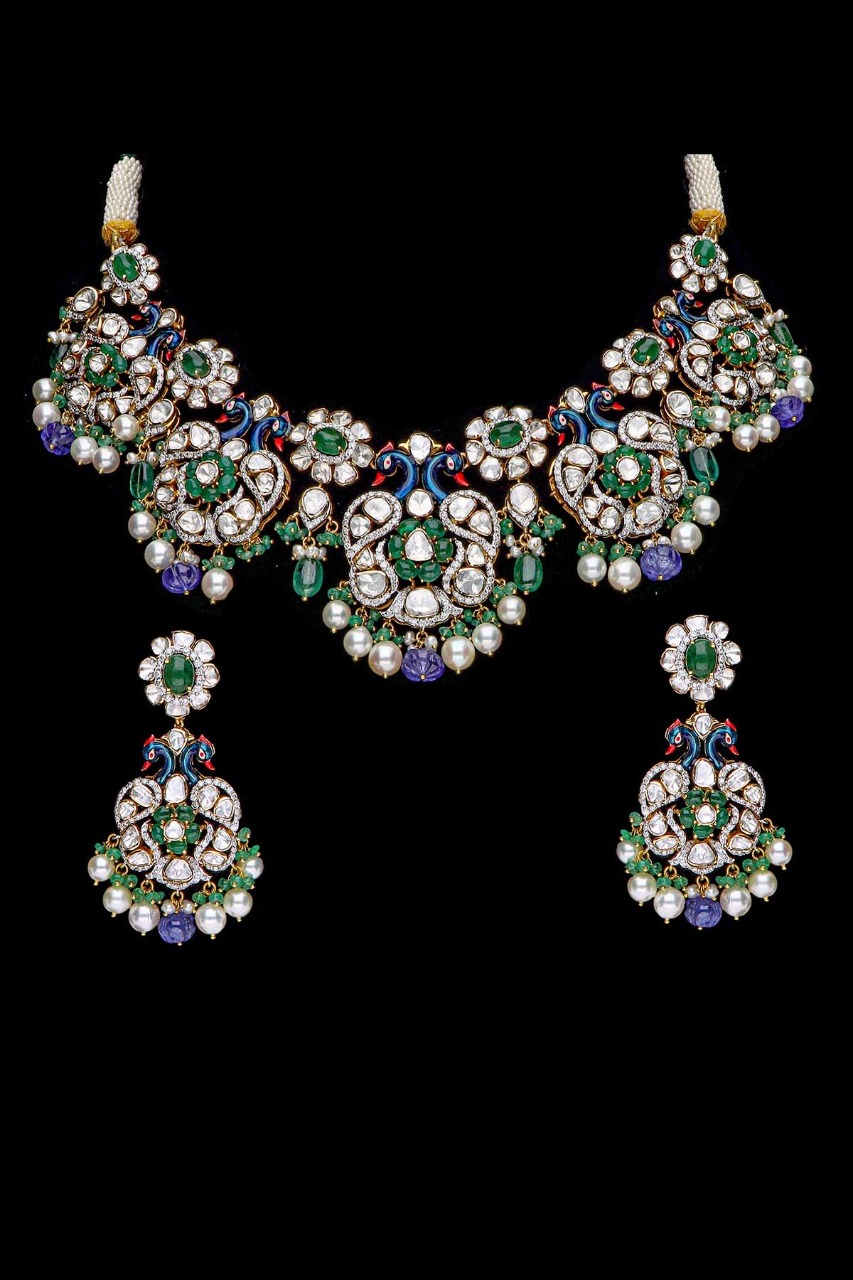 3D forms of peacock designs have been used in different styles which is one of the trending collections of Dassani Brothers. The jewellery is crafted by using a variety of precious and semi-precious colour stones including Russian emeralds, Tanzanites, Tourmalines, Rubies in different cutting styles and shapes, Pink Sapphires, and Pearls with Diamond and Polki. The bird collection is exclusively available online.