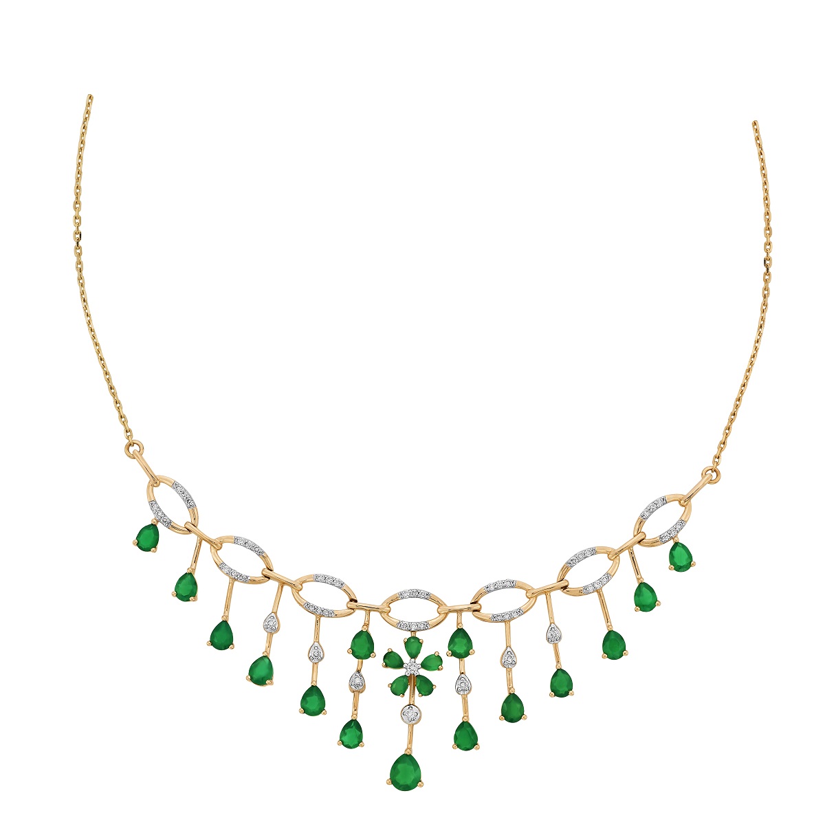For the auspicious occasion of Akshay Tritiya and Gudi Padwa, the brand also launched their exclusive Diamond Necklace Set priced at INR 69,999. The 14kt yellow gold necklace is crafted in red and green coloured stones
