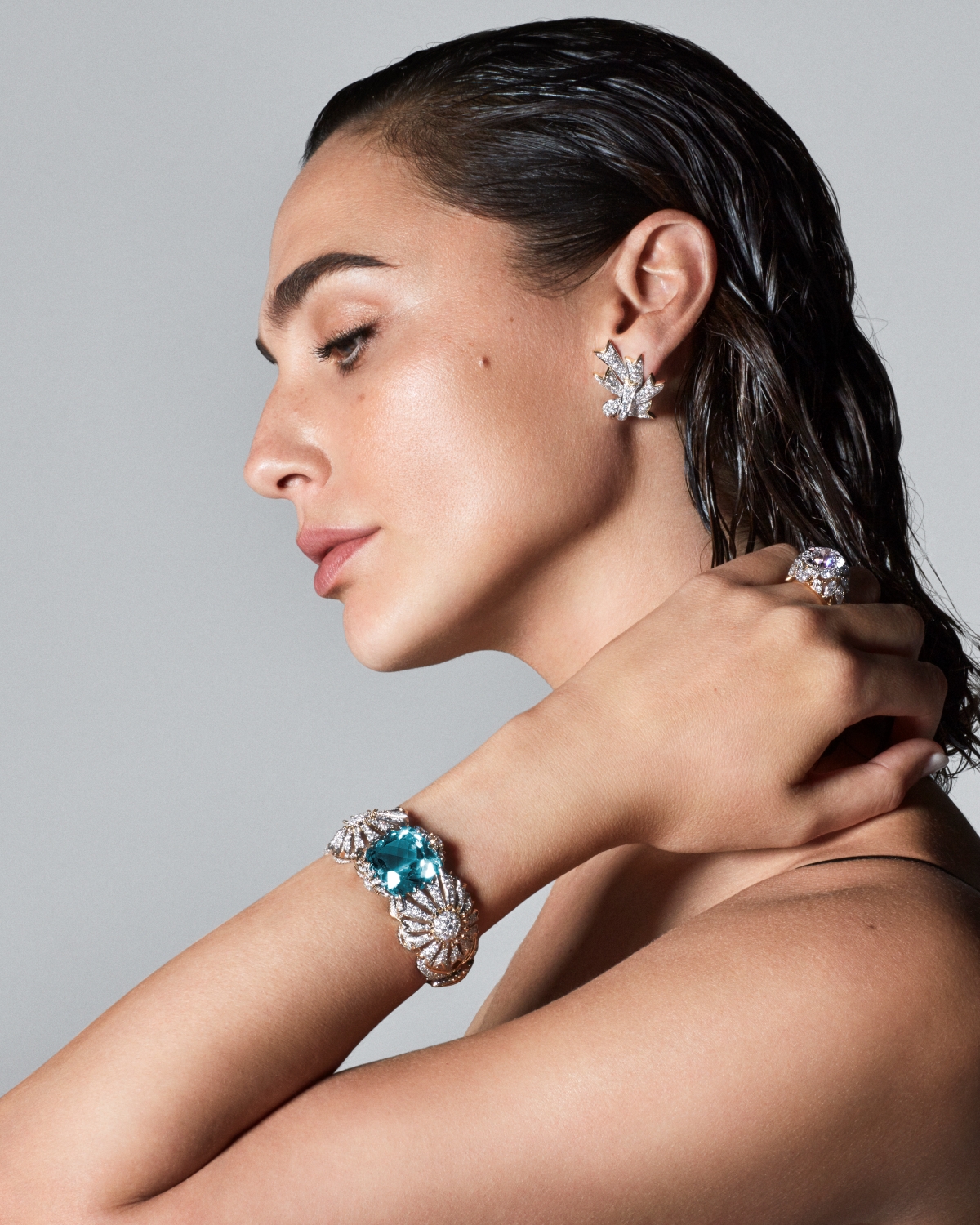 Gadot’s campaign represents the House’s first advertising venture with the actress. In addition to the new Blue Book designs, Gadot also wears several of Jean Schlumberger’s masterworks featured in BOTANICA, including his iconic Bird on a Rock brooch and the Fleurage bracelet. An exquisite creation that Tiffany & Co. artisans brought to life for the first time, the Fleurage bracelet is based on a sketch for a design that Jean Schlumberger once considered for the legendary Tiffany Diamond.